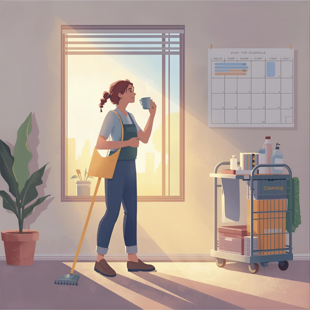 Fix: Stick to a routine schedule for tasks like vacuuming, wiping surfaces, and cleaning bathrooms.
